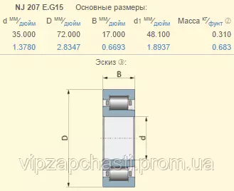 Подшипник Claas 243436.0 аналог NJ207 KINEX - Слоаччина
