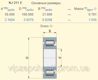 Подшипник Claas 243452.0 аналог NJ211E KOYO