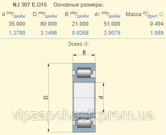 Подшипник Claas 243535.0 аналог NJ307EG15 KINEX - Словаччина