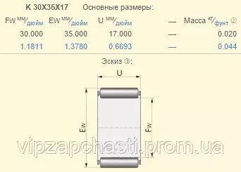 Подшипник Claas 631637.0 аналог K30X35X17 NTN