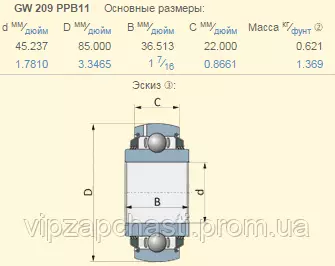 Подшипник John Deere A20649 аналог GW209PPB11