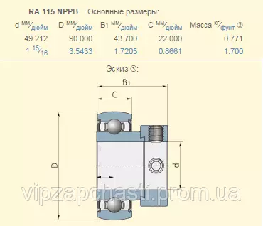 Подшипник John Deere AH64434 аналог ES210-31G2 SNR, RA115NPPB, YET210-115
