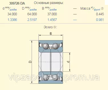 Подшипник John Deere AZ37456 аналог 309726DA, 3464W-52RSCS44, GB10884, VKBC20012, 256907, DAC3464W42RSCS