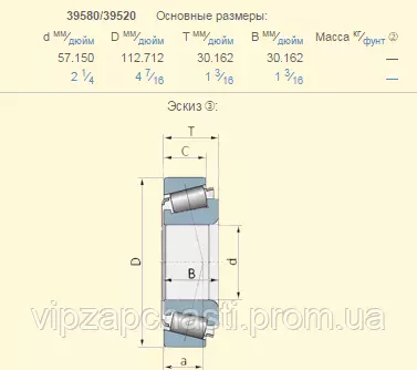 Подшипник John Deere F58524 аналог 39580/39520 NTN