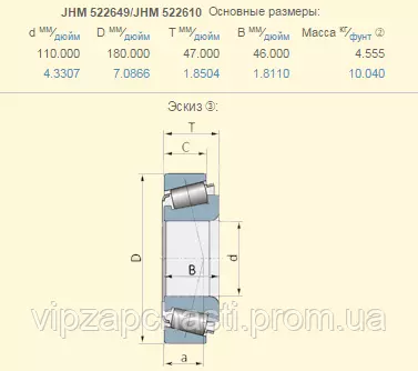 Подшипник John Deere JD10134 аналог JHM522649/JHM522610