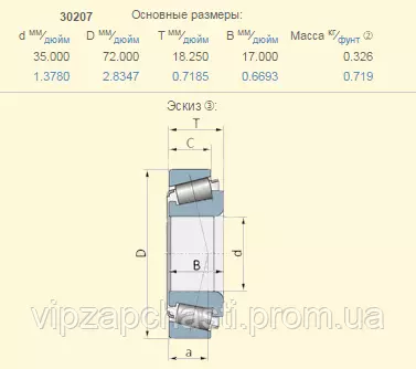 Подшипник John Deere JD37011 аналог 30207