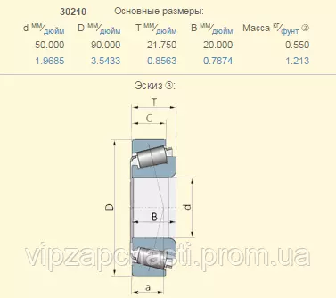 Подшипник John Deere JD37087 аналог 30210 SKF-UA