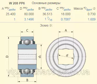 Подшипник John Deere JD8539A аналог W208PP6 (подшипник с квадратным отверстием)