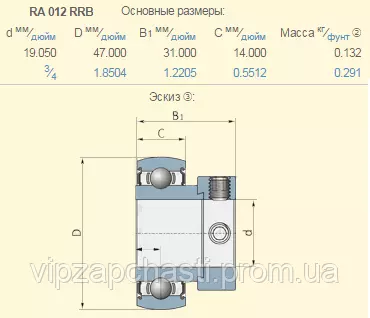 Подшипник John Deere JD9217 аналог ES204-12G2, YET204-012, GRA012RRB, RA012RRB