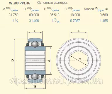 Подшипник John Deere JD9373 аналог W208PPB16, 86523785, 700703101, 1577800M1, 70575883