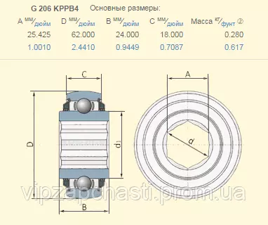 Подшипник John Deere JD9407 аналог G206KPPB4, JD9313, 206KRRB6