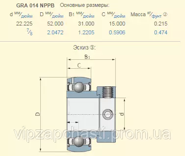 Подшипник John Deere JD9416 аналог GRA014NPPB, FH207-20G, ES207-20G2, YET207-104, GRA104NPPB-AS2/V