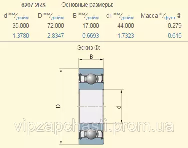 Подшипник шариковый Lemken 3198601 аналог 6207-2RS