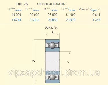 Подшипник шариковый Lemken 3198640 аналог 6308-RS