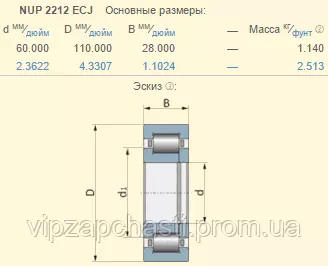 Подшипник роликовый Lemken 3198852 аналог NUP2212