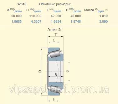 Подшипник роликовый конический Lemken 3199204 аналог 32310