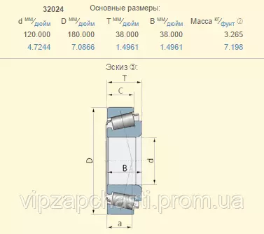 Подшипник роликовый конический Lemken 3199226 аналог 32024X