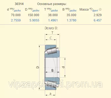 Подшипник роликовый конический Lemken 3199288 аналог 30314