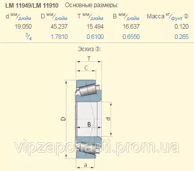 Підшипник LM11949/11910 JD8188+JD8226, 822-045С+822-050С, 651815R91+651814R1