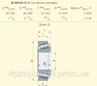 Підшипник M86649/M86610 аналог 86512014 / 400983R91 + 530741R1 / 071982 + 071983 / ( JD8979 + JD8267 / AH65358 / AL161289 / AL71169)
