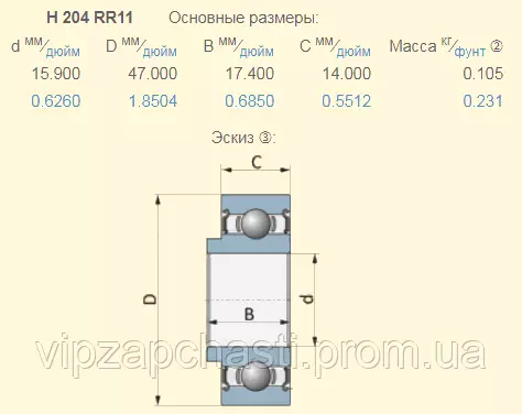 Подшипник Massey Ferguson W247167B аналог H204RR11