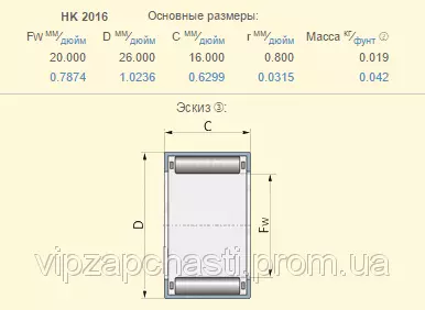 Подшипник роликовый игольчатый New Holland 822987 аналог HK2016