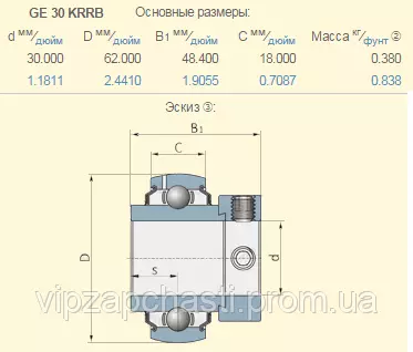 Подшипник шариковый New Holland 84992371 аналог GE30KRRB