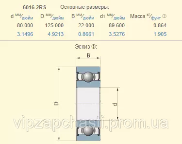 Подшипник шариковый New Holland 84995781 аналог 6016