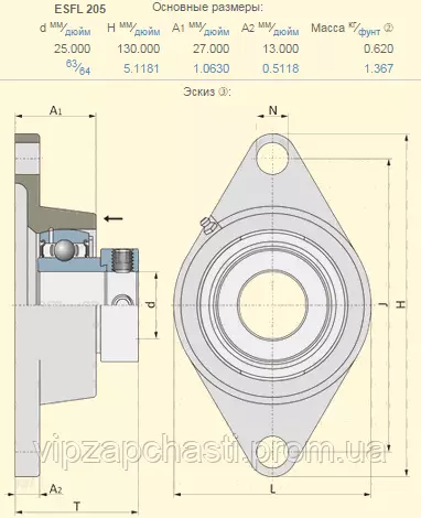 Подшипник New Holland 89514667 аналог FD205+ES205G2