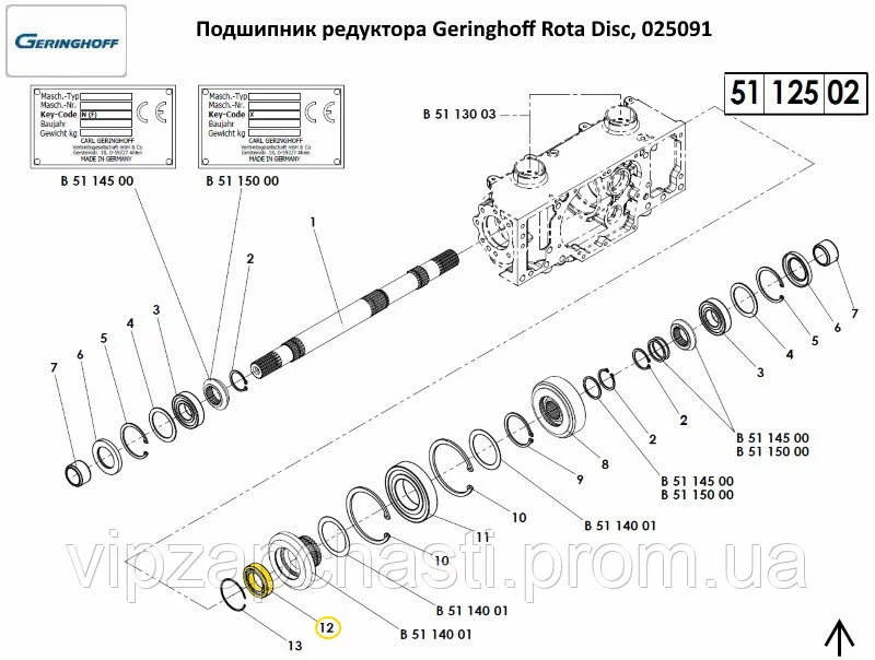 Підшипник редуктора Geringhoff Rota Disc, 025091