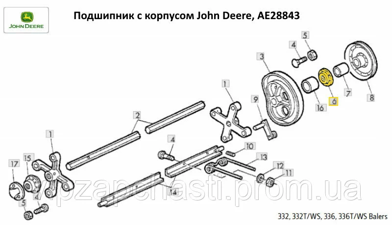 6 - Bearing - With Housing - 1 - Part Number : AE28843 - Supported Models : 332, 336 - Remarks : LH (SUB FOR AE28844)