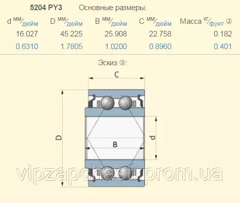 Подшипник шариковый двухрядный P59196, 5204PY3, 5204KRP50, 822-232C