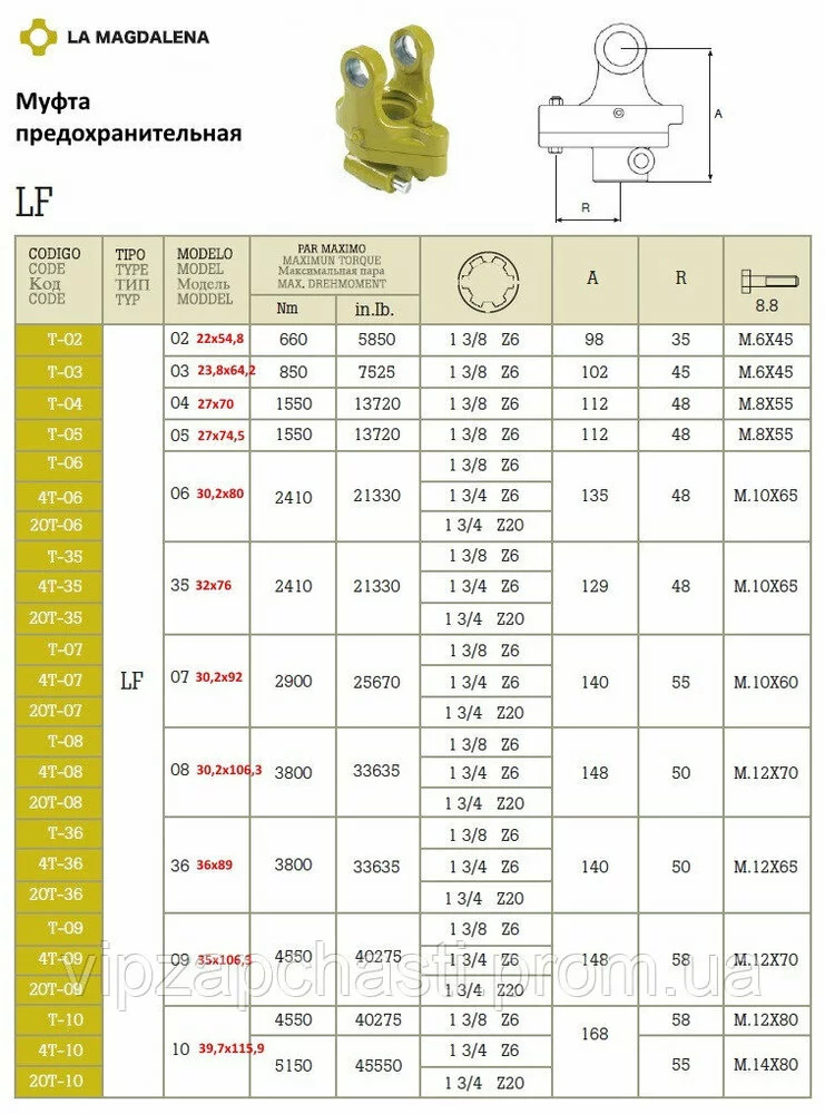 Муфта предохранительная на карданный вал La Magdalena (Испания)