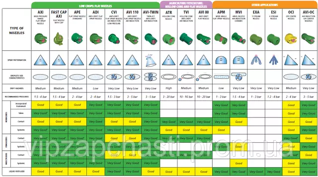 Применение распылителей на опрыскиватель Albuz (Франция)