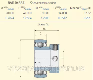 RAE20RRB подшипник не смазываемый (Timken, SKF, INA, RBF, NTN, SNR)