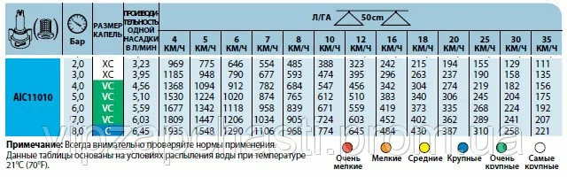 Характеристики распылителя AIC110 TeeJet: