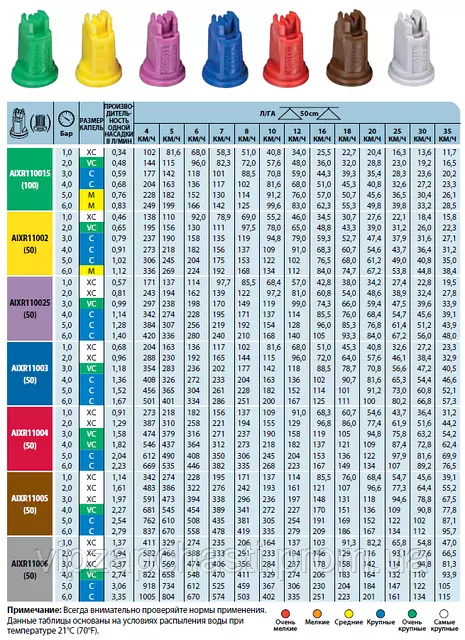 Характеристики распылителя AIXR TeeJet: