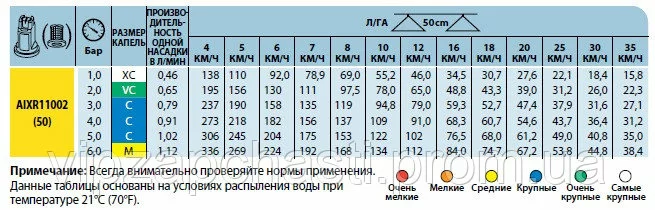 Характеристики распылителя AIXR TeeJet:
