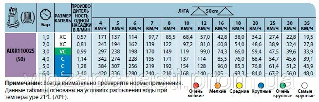 - Изготавливаются наконечники с семью видами производительности и широким диапазоном рабочего давления: 1–6 бар (15–90 PSI)