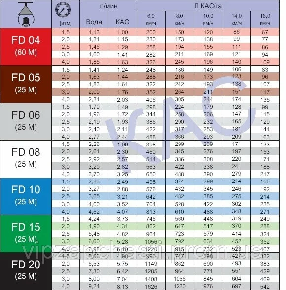 Обозначение распылителей КАС FD |