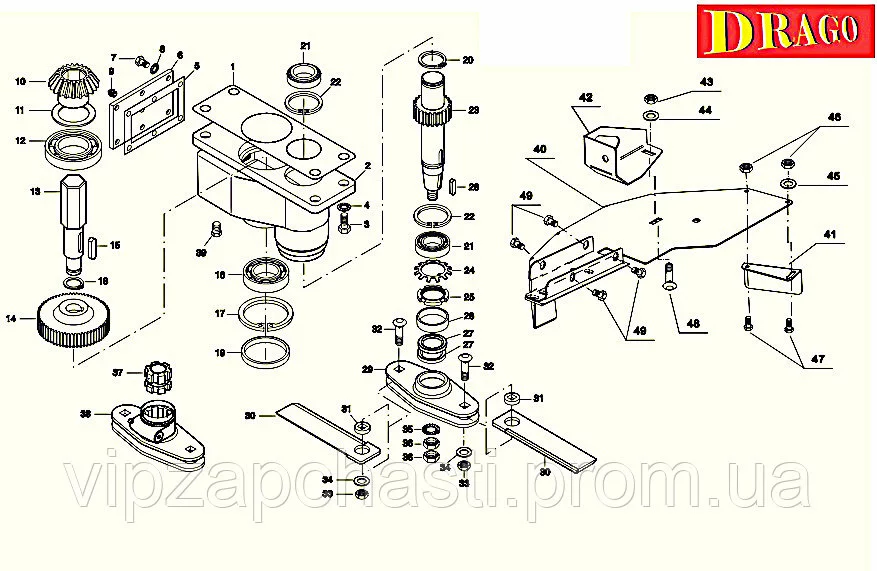 Редуктор нижнего центрального измельчителя Ricambi Drago Fissi OLIMAC