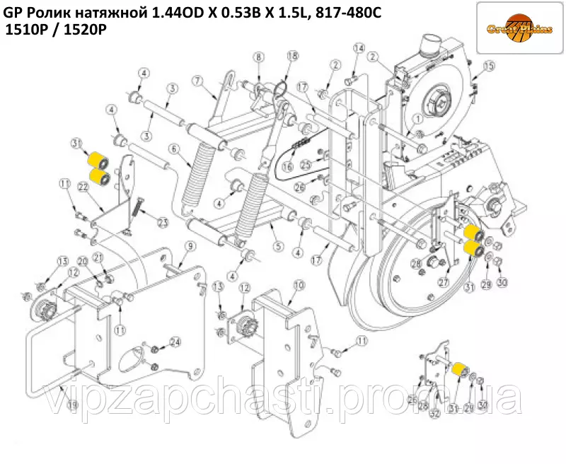 31. 817-480C IDLER SPOOL 1.44OD X.53B X1.5L