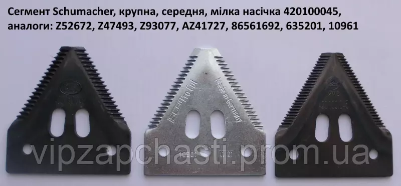 Сегмент на зерновую жатку System Schumacher, 420100045 мелкая насечка