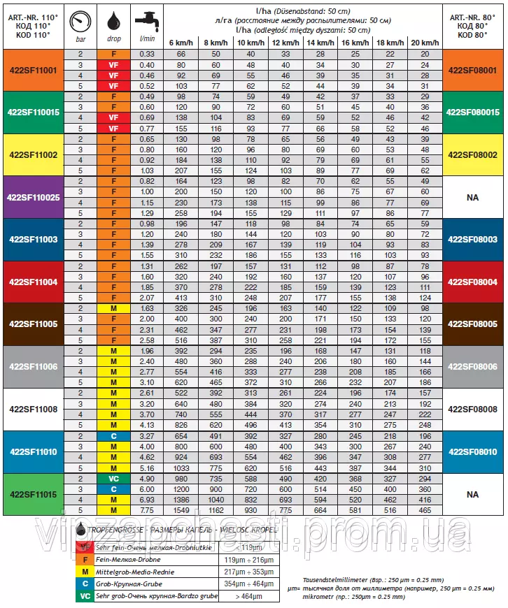 Обозначение распылителей SF