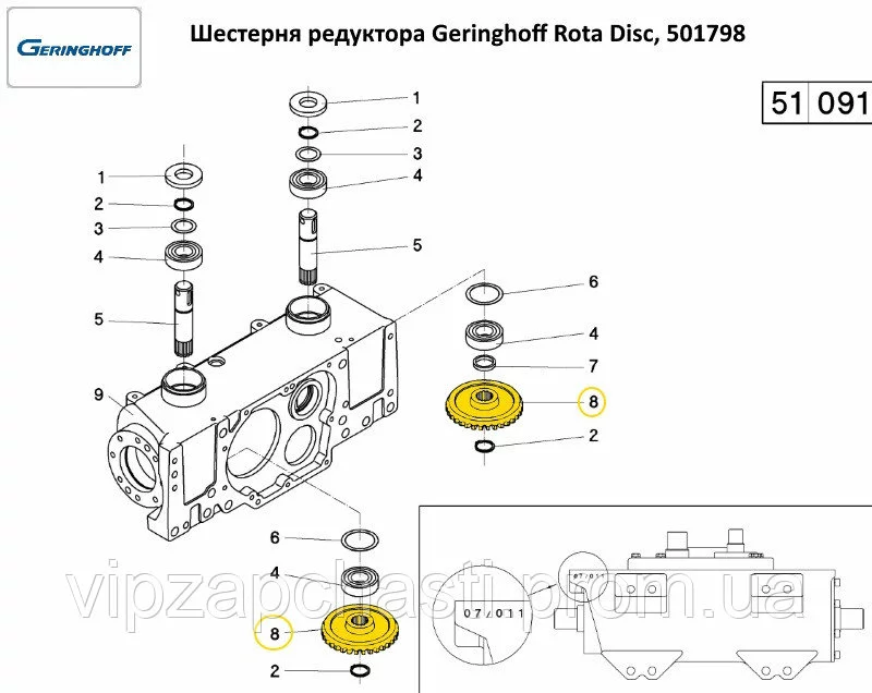 Шестерня привода мысовой цепи Geringhoff Rota Disc 501798