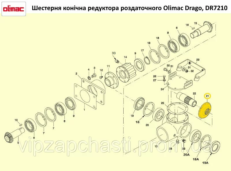Шестерня конічна редуктора роздаточного Olimac Drago DR7210