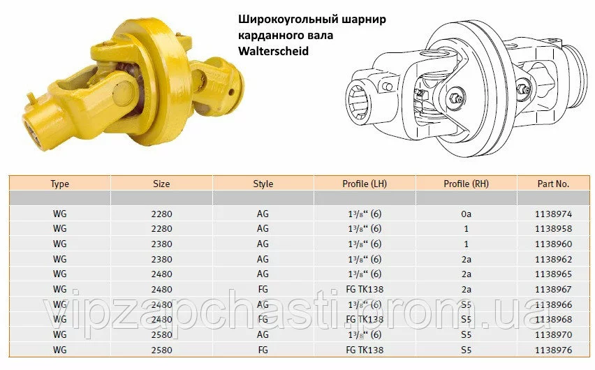 Широкоугольный шарнир карданного вала Walterscheid