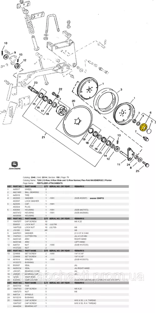 Ступица диска сошника на сеялку John Deere AA37472 аналог GD1031, A30368, 852065, 700726981