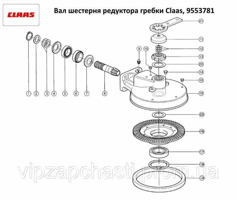 Вал шестерня редуктора шестерни Claas, 00 0955 378 1