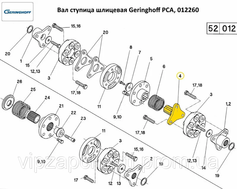 Вал ступиця шліцева Geringhoff PCA, 012260